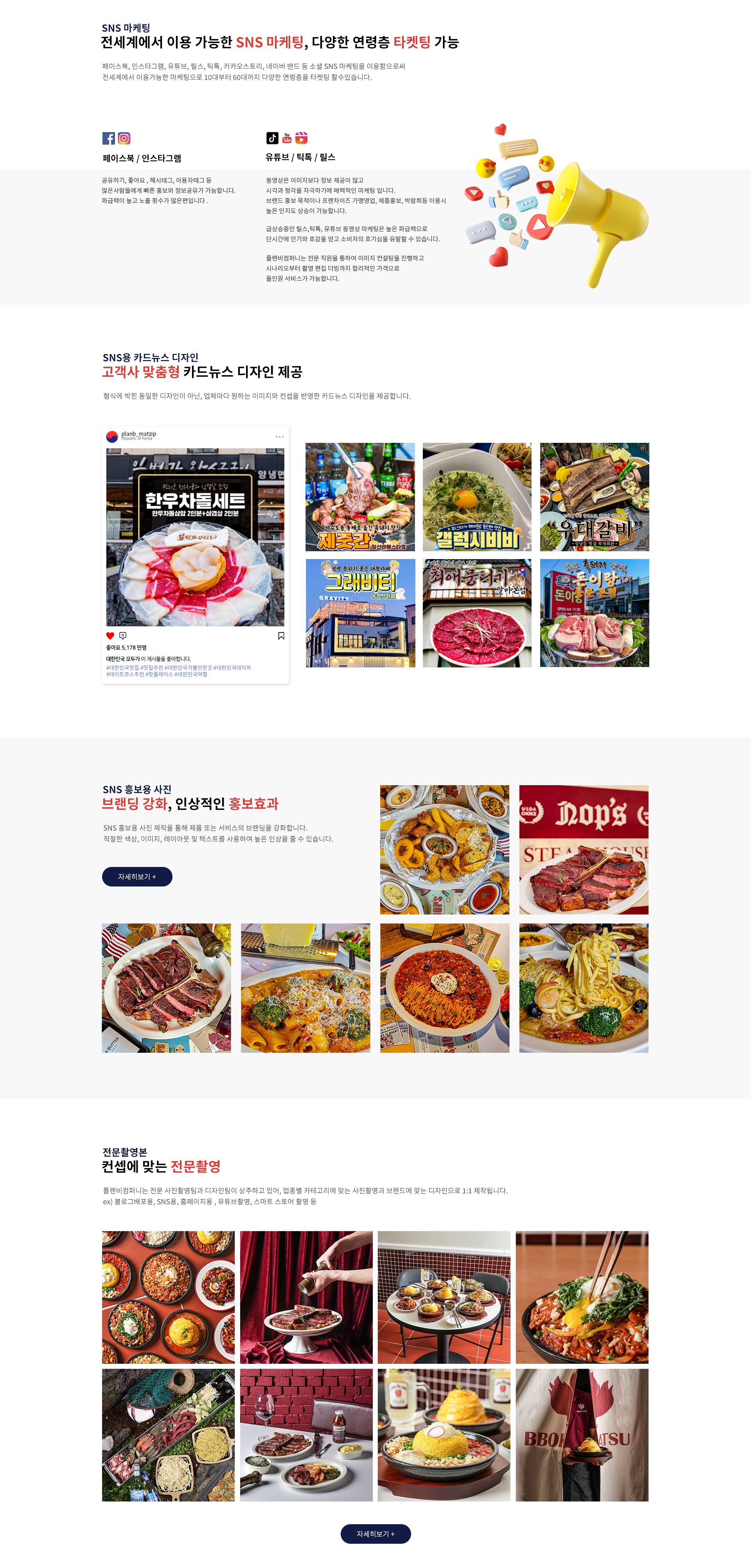 플랜비컴퍼니는 전문 사진촬영팀과 디자인팀이 상주하고 있어, 업종별 카테고리에 맞는 사진촬영과 브랜드에 맞는 디자인으로 1:1 제작됩니다.